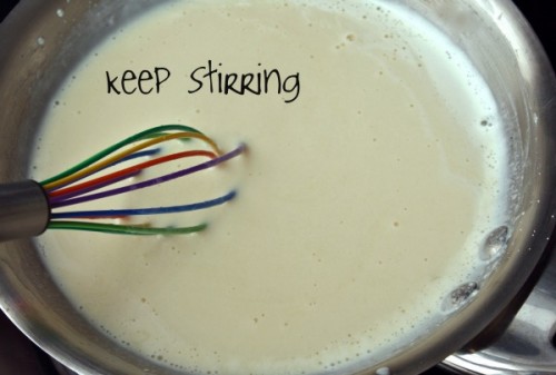 - Turn heat to medium and stir constantly until the mixture thickens (does not take very long).