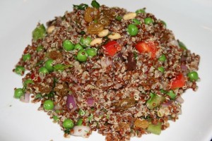 I actually got to meet one of my readers who lives in the Albuquerque area (and who also went to The Ohio State University, GO BUCKS! Seriously, what are the odds??) this past weekend at the local GIG (Gluten Intolerance Group) bi-monthly potluck. Renee brought the following Quinoa Salad and OMG, it was soooo good! I did not get to have much at the potluck because as usual, I was late and it was almost gone when I got there! Renee kindly sent me the recipe so I could make more at home and also share the recipe with everyone.