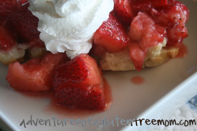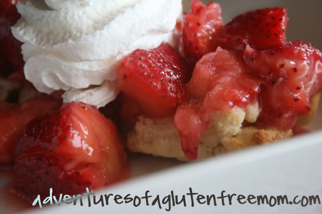 With strawberries being in season, I have been blessed with a weekly abundance of bright, red, plump and juicy organic strawberries in my CSA box. I decided to make some strawberry shortcake this weekend to take to a Memorial Day BBQ. To quote one gluten-eater, they would not have known the biscuit was gluten-free had I not told them! I don’t know why, after all this time, that comments like those still makes me feel good and “normal.” This food IS normal to me and my family, so why do I still care about that validation? 😉