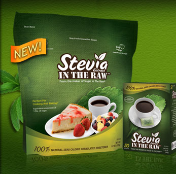 I found a great new stevia product the other day, Stevia Extract In The Raw. I was very excited to find this, as it reminded me of the cup-for-cup Splenda I used to buy. I have only recently started to use stevia products and I am definitely not a big fan of opening a bunch of little packets, nor can I seem to gauge the proper amount of the liquid stevia to use (I have a tendency to add a drop or two too much). The Stevia Extract in the Raw is a simple cup-for cup replacement, thus eliminating a lot of the math. I haven’t baked with it yet as there are some slight adjustments that need to be made when converting your own recipes, but so far, it has been a great way to sweeten fruit and iced tea without risk of overdoing it.