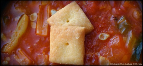 The Tomato Soup with Garden Vegetables was a big hit with my boys, especially with a few homemade gluten-free “Cheez-Its” added on top (this photo was taken before we discovered Luke’s casein intolerance).