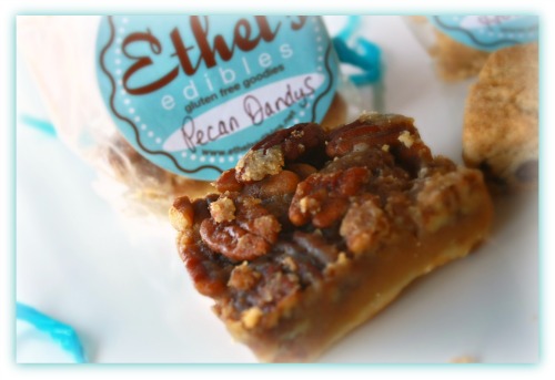 I recently received two beautifully wrapped (and complimentary) packages of gluten free Blondies and Pecan Dandys from Ethel’s Edibles to sample and review. Ethel’s Edibles is a gluten free bakery in Michigan, founded by Jill Bommarito and inspired by her grandmother, Ethel (hence the name of the bakery).