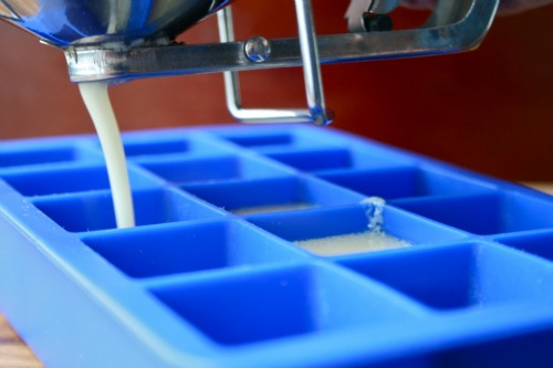 11. Pour butter into silicone ice cube trays, I used my pancake batter dispenser so it wouldn’t be as messy. Freeze for at least one hour (I’ve found that freezing it overnight helps the butter pop out of the mold easier).