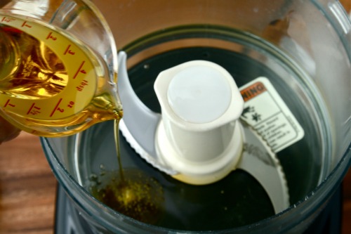 4. Add oils to the bowl of the food processor (I think this would also work in a blender).