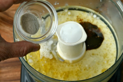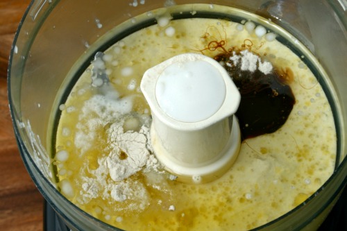 - Add the coconut milk mixture, sunflower lecithin and guar gum to the food processor. Process for 2 minutes, scraping down the sides halfway through.